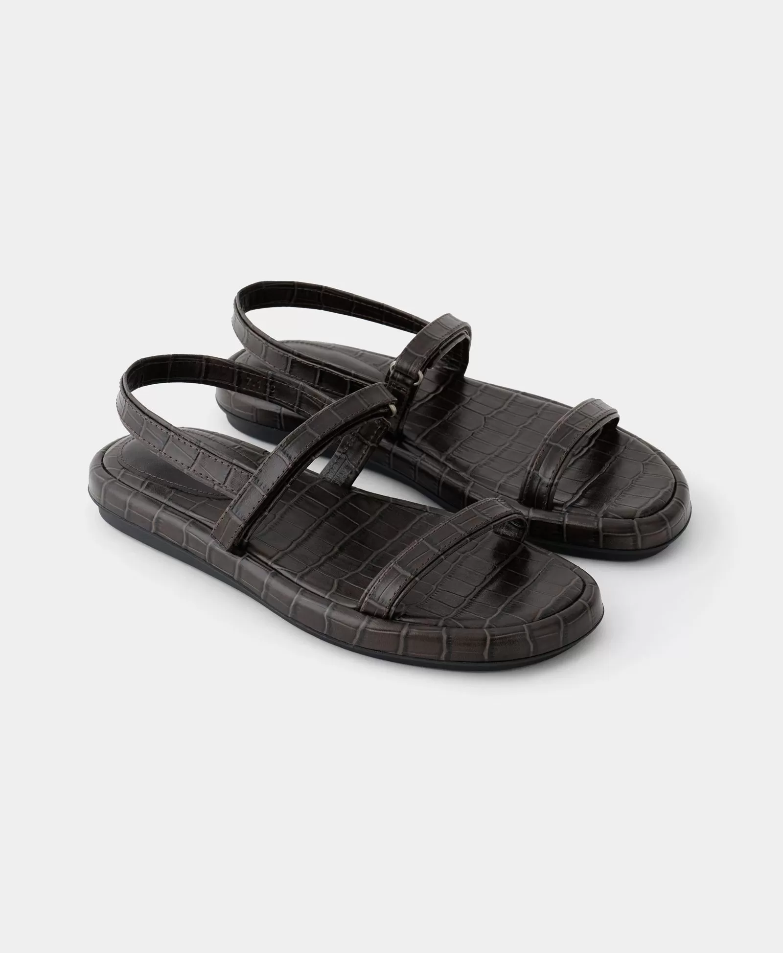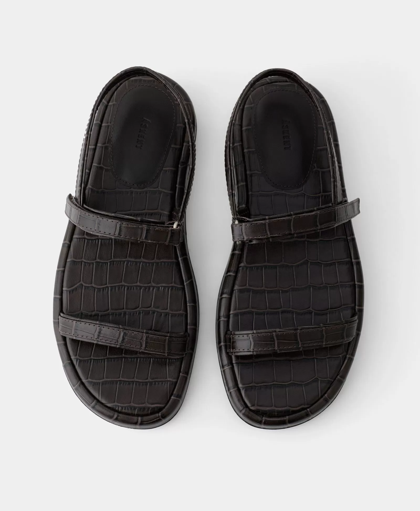 Сандалии на широких ремнях. Цвет: тёмно-коричневый крокодил. Вид 8