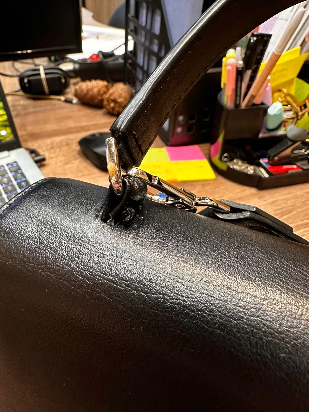 27 сентября я заказала маленькую черную сумку бренда ASKENT. 2,5 месяца я ходила и искренне радовалась этой покупке. Ноооо… на ручке у сумки начала отрываться петелька. Это при том, что тяжестей я в сумке не носила (она и не позволяет их носить).