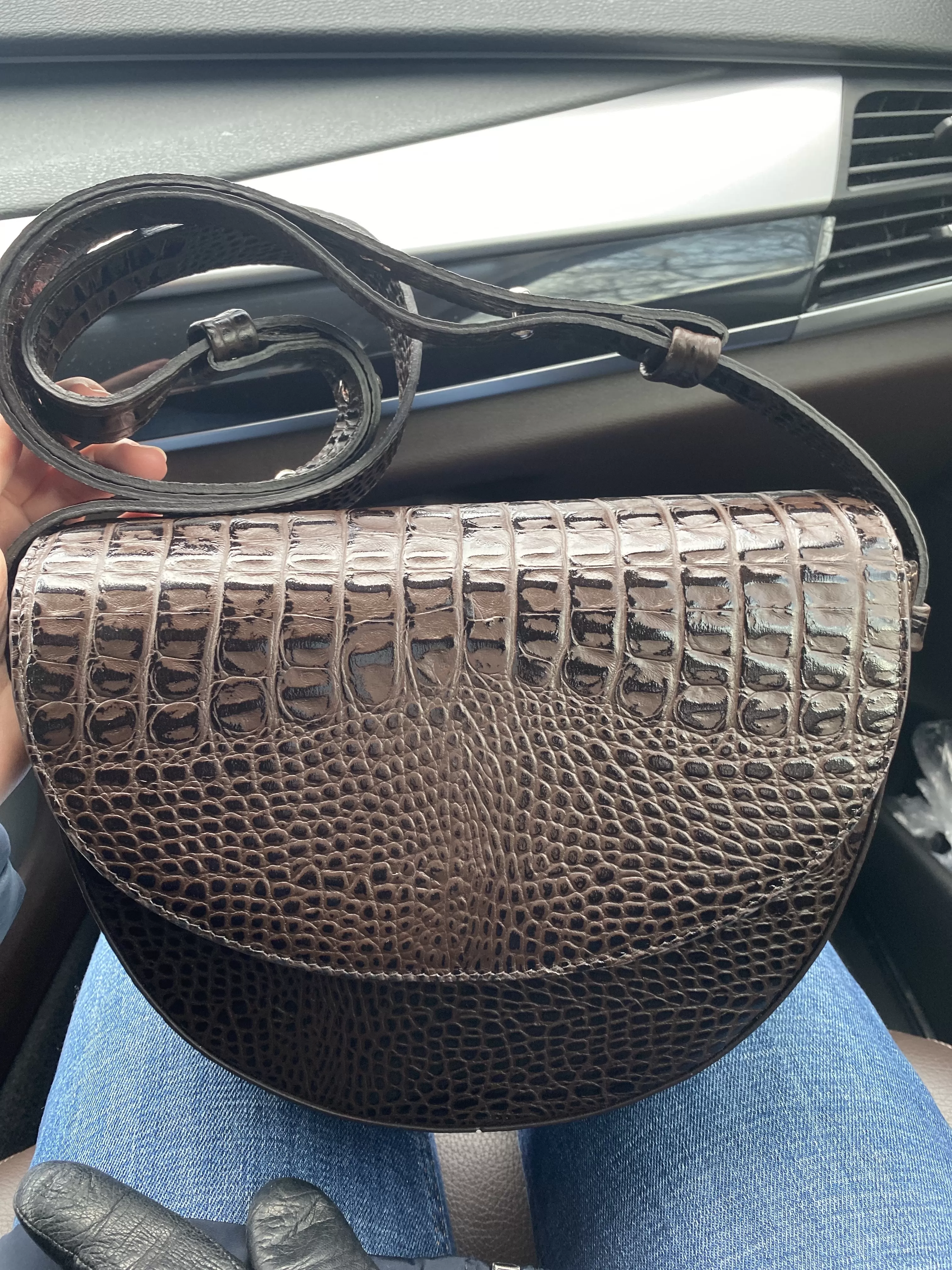 Прекрасная сумка! Очень довольна покупкой. Идеальные размер и форма. Помещается все самое необходимое: кошелек, телефон, пенал для очков, расческа, даже небольшая косметичка) Цвет в реальности спокойнее, что для меня хорошо, на мониторе он казался более рыжим.