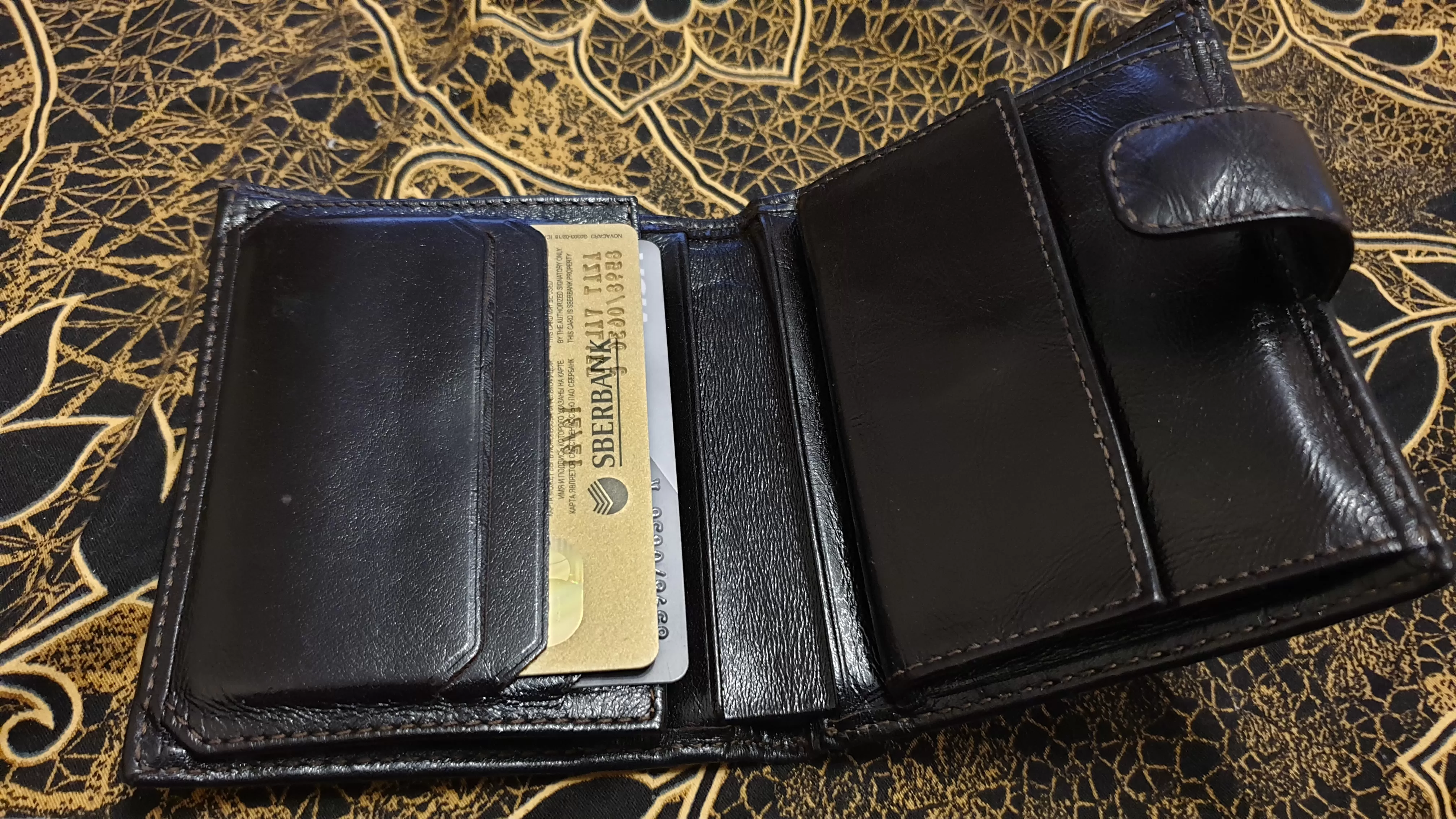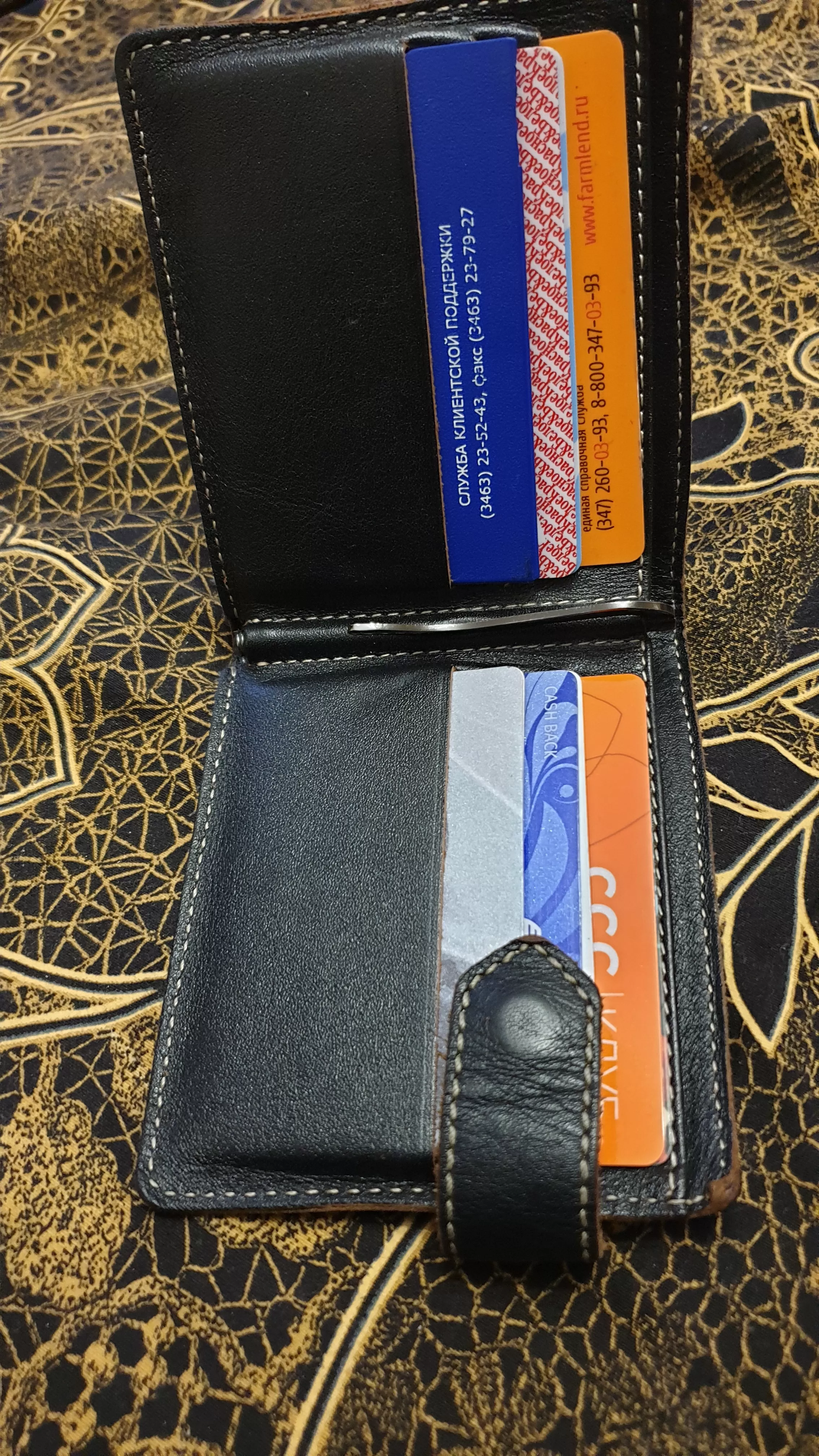 Отличный,удобный до ужаса.Можно зажимом деньги зажать,и так положить в кармашек.Много места для карточек и визиток